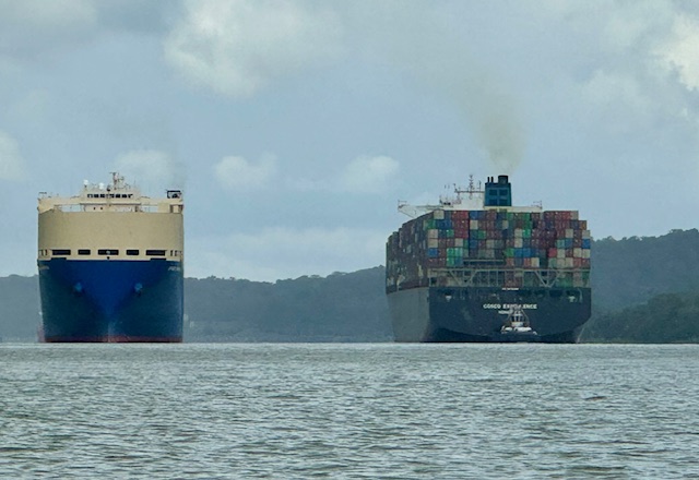 Today we took the Flora and Fauna of the Panama Canal tour which was a premium tour booked through Viking. We boarded our bus in Colon and took a 90-minute bus ride to the Gamboa Rainforest Reserve Marina where we boarded small boats that could hold approximately 20 people. We left the marina and entered into the main channel of the Panama Canal to begin our journey toward the back waters of the Panama Rainforest. We quickly discovered we were on the water with some really big ships. It was really an interesting experience to be at water level in our little tour boat next to the gigantic ocean-going vessels.