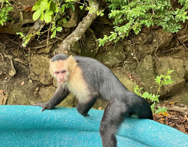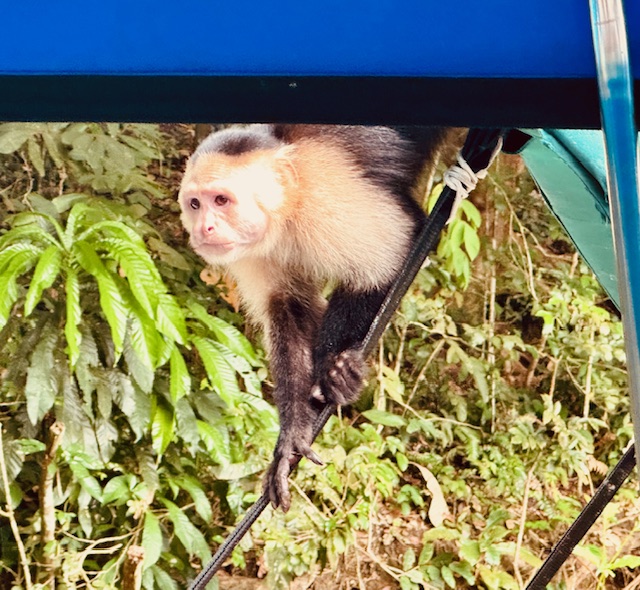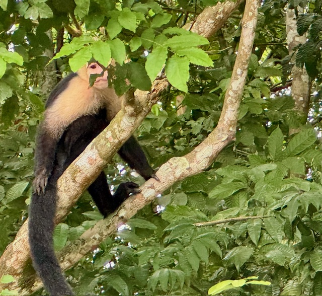 After riding in the canal for about 30 minutes, we a made our way into a small tributary that feeds into the canal and Lake Gutun. We approached a small island where two other small boats were floating along the shoreline to find several White Faced Capuchin Monkeys in the trees. Guides on the boats were trying to coax them closer to the boats with peanuts and bananas.