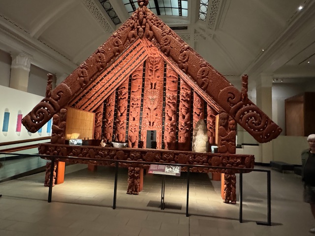Today was our second of three days in Auckland, we decided to take the Viking include tour, “Highlights of Auckland.” This was one of the best of the included tours that we have taken so far. We took a driving tour around the city center/business district where the major shopping districts were pointed out as well as the city’s center piece, the “Sky Tower”. From there we drove through the suburb of Parnell with it’s quaint colonial style homes and shops. We then went on to the highlight of the tour, the Auckland Museum. The museum is located in the middle of the city’s largest park the Auckland Domain. The museum is home to one of the world’s largest collections of Maori and Polynesian artifacts, including an 82-foot-long Maori canoe carved from a single tree. The museum is also home to the military memorial and war museum, a natural history collection and an interactive area for children. We highly recommend this tour and frankly, if we were to do the tour again, we would have left the tour and stayed longer at the museum and taken the city bus or taxi back to the ship.