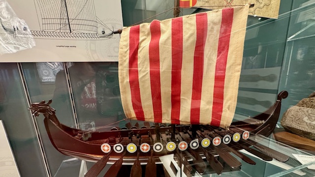 The Viking Heritage Museum is located in a very prominent location off the ship’s main foyer. The museum showcases the history of the people during the Viking Era lasting from 782 AD – 1066 AD with influences lasting through the present day. The display includes replicas of sculpture, jewelry, Nordic artifacts, books, photographs and a replica of a drekar, a Viking longship.