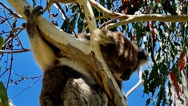 After Apollo Bay the road leaves the coastline for a several miles and goes through the Great Otway National Park a densely forested and hilly area. It was on this stretch of the highway that we spotted Koala Bears in the trees and were able to stop for pictures.
