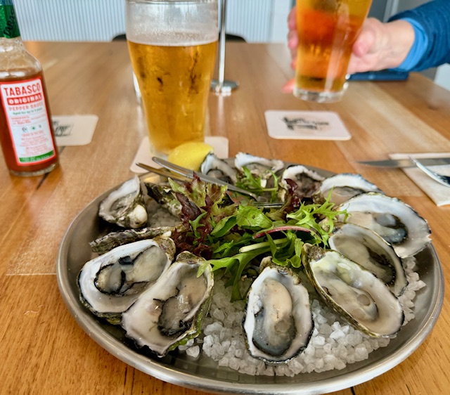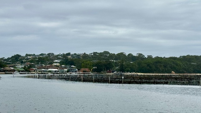 Today we took the Viking included tour, “Scenery of the Sapphire Coast”. The tour began with a drive through the Sapphire Coastal district where we saw the sheltered waters that are home to the award-winning oysters raised in this area. Three different oyster varieties are found in the area – First and most common is the Sydney Rock Oysters, they are small in size compared to other oysters, but are renowned for their delicate, creamy and slightly sweet flavor; second is the Pacific Oysters originally native to Japan and now farmed in Australian waters, larger and creamier than the Sydney Rock Oyster; and third the Angasi Oyster also native to the district, but quite rare. Our first stop was in the small fishing village of Merimbula. We took a short walk on the board walk that runs along the fishing boat harbor and local oyster beds.