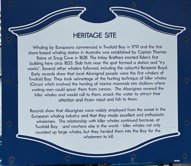 Today we made a stop in Eden, a small town on Australia’s sapphire coast. Eden was an important port for the country’s whaling industry for well over 100 years. The Eden whalers had an advantage over their competitors through a unique example of mutualism, a local pod of orcas, led by a whale named Old Tom, would assist in the hunting by herding other whale species into the nearby bays for easy dispatching, in exchange for an easy meal. Today, the town focus is on whale conservation, fishing and tourism.