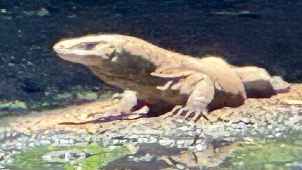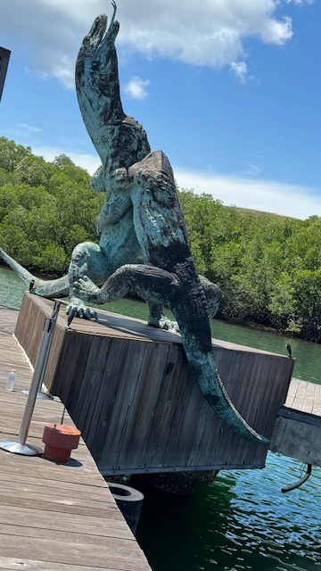 Today the excursion offered was a ranger led tour of the park. There is an elevated board walk that leads from the tender pier to small museum and visitor center. The tour was a little over an hour long and no additional time was allowed on the island. Apparently, the park has strict rules regarding the number of people that can be in the park at any given time, so we were shuttled over on tender boats in small groups. As one group finished the tour a new group arrived. It was very hot and humid so most of the Komodo Dragons that we saw were in the shade, making photographing them a little challenging, but we have a few pictures worth sharing.