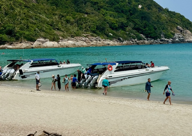 We did an optional excursion to the neighboring small island of Koh Pha Ngan for a day of snorkeling and relaxing on the pristine beach. It took roughly 30 minutes on a large speed boat to reach our snorkeling sight where we spent about 45 minutes in the water that was teaming with tropical fish pretty coral.