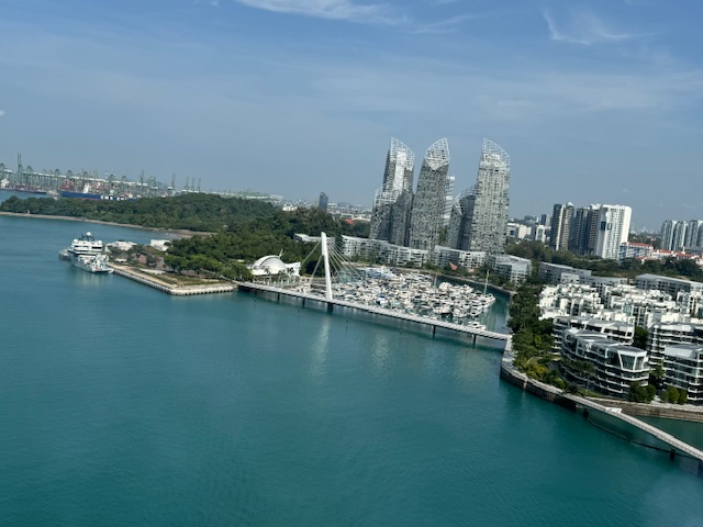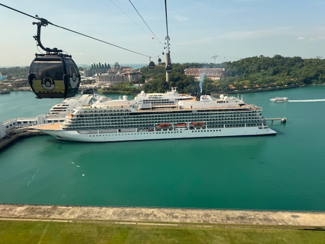 Our first stop was just outside the cruise terminal at the Harbour Front stop of the Singapore Cable Car system. We purchased a round trip ticket that let us ride the full loop of the system up to Mount Faber, down to Sentosa Island and back to Harbour Front. We had spectacular views of the city and harbor skylines.