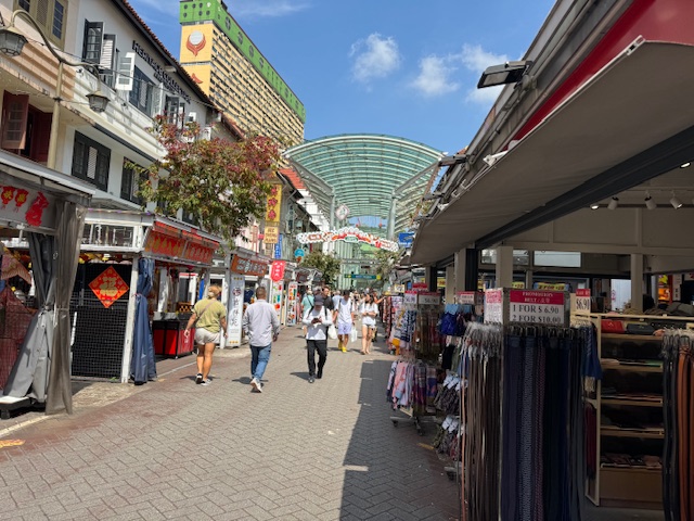 From there we headed of to the MRT (subway system) and took the short ride to China Town. Our plan was to visit the Chinatown Heritage Centre, but it was closed for renovations. So, we decided to stroll the narrow streets and do a little shopping. We found an impressive tailor shop where Kully ordered a tailor-made dress…can’t wait to see it.