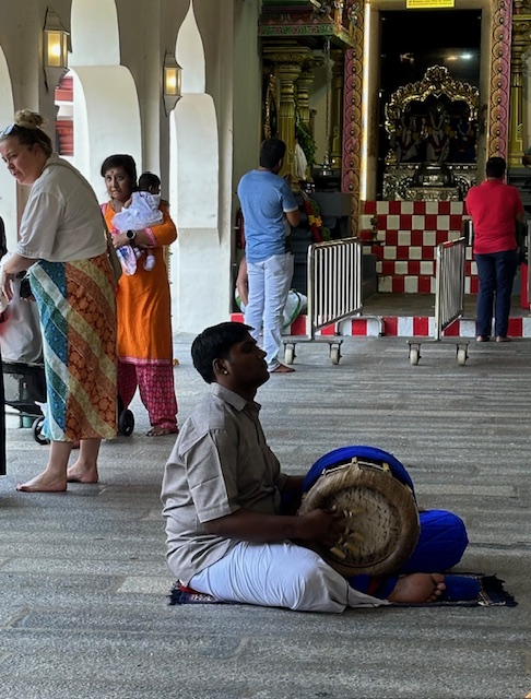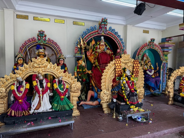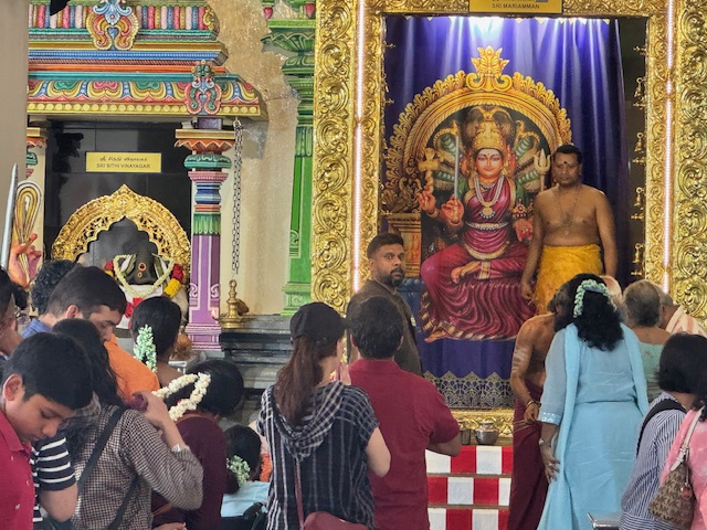 We visited the Sri Mariamman Temple, Singapore’s oldest Hindu temple constructed in 1827 for use by immigrants from Southern India. The temple is dedicated to the goddess of healing epidemic diseases, Mariamman. The temple’s tower entrance was completed in 1962 and is modeled on intricate sculpture work of temple architecture in Southern India.