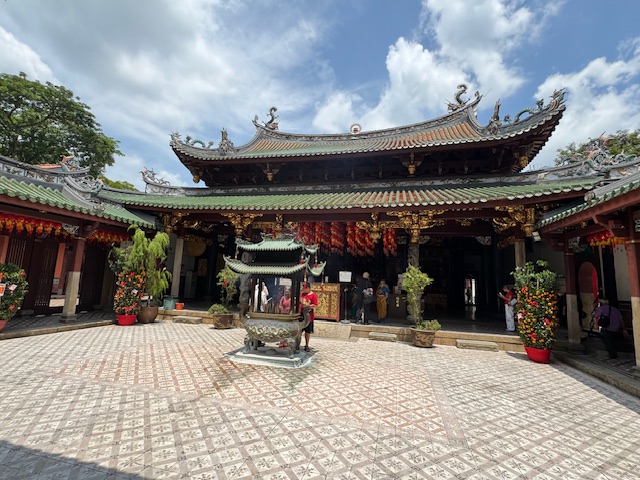 From here it was about a ten-minute walk to the Thian Hock Keng Temple. This temple was very different than the Sri Mariamman, as this was a Chinese Buddhist Temple. The Temple of Heavenly Bliss was built in 1840 on a site where Chinese migrants would land on the shores of Singapore in search of a new life. On arrival in Singapore the migrants wanted to thank the deities and so the temple was dedicated to the Sea Goddess Mazu.