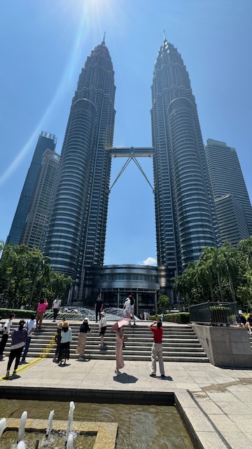 Our final stop was at the Petronas Towers, resembling a pair of steel rocket ships linked by a towering sky bridge. The structures are the tallest pair of towers in the world, and third tallest building overall. the architectural wonder is the pride of Malaysia.