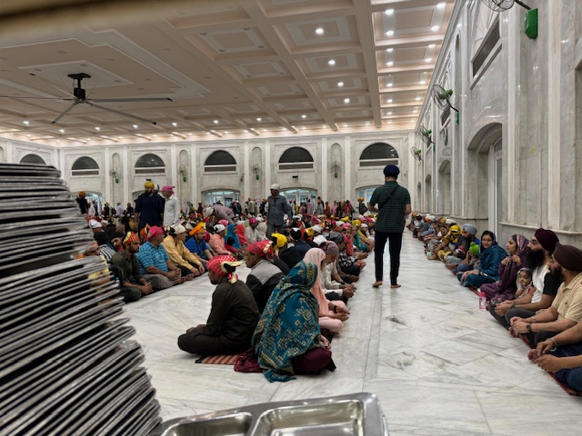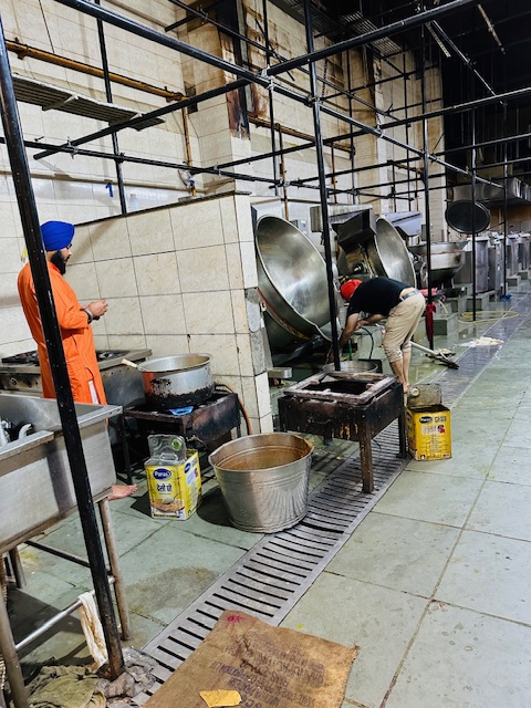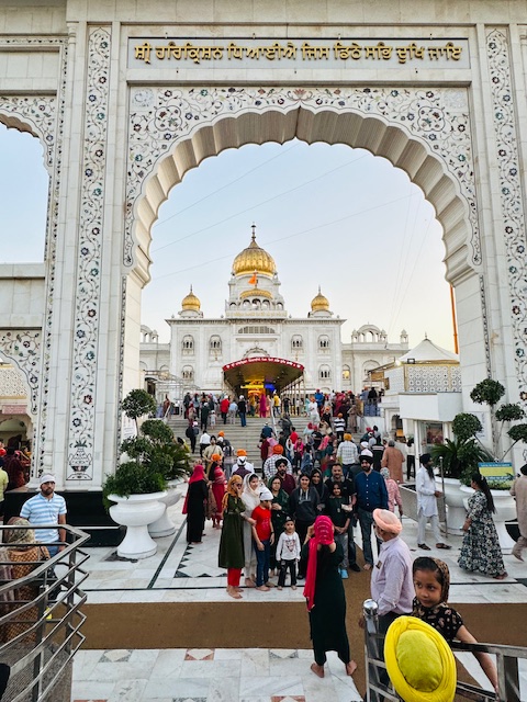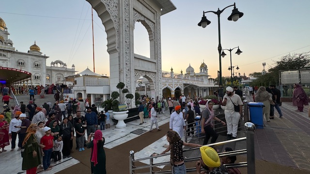 We made a stop at the Gurudwara Bangla Sahib Temple, the second largest Sikh temple in the world. The Sikh religion was founded by a disenchanted Hindu Guru in the fifteenth century. The faith is based on the idea of living an active, creative and practical life of truthfulness, fidelity, self-control and purity is above metaphysical truth, and that the ideal man establishes union with God, knows his will and carries out that will. Believers live their faith through daily prayer and service to others. The temple operates an open kitchen that feeds approximately 35,000 people every day. The kitchen operates every day of the year, feeding three meals each day, is funded totally through donations and staffed by volunteers. The meals are considered a holy meal and are consumed not only by the poor and needy but any one desiring food. No one is turned away.