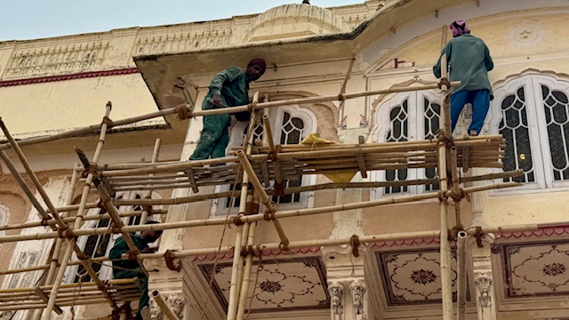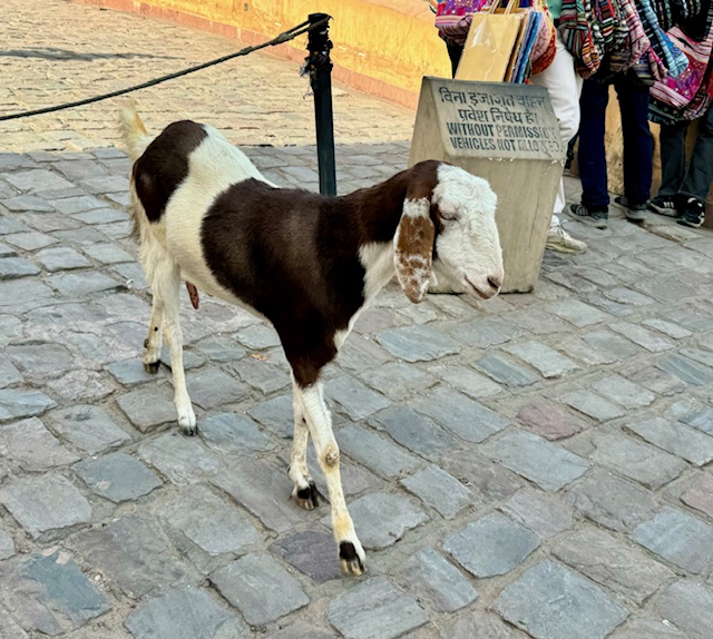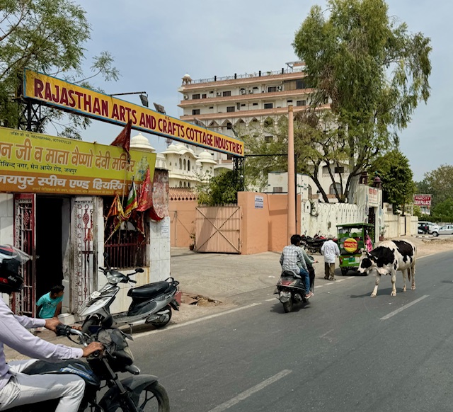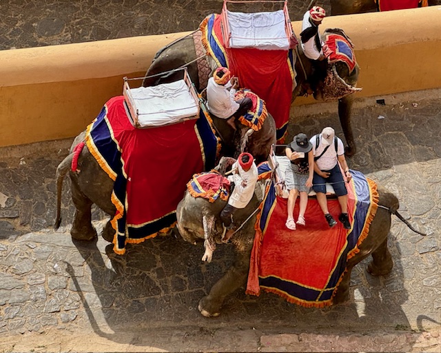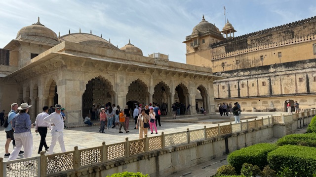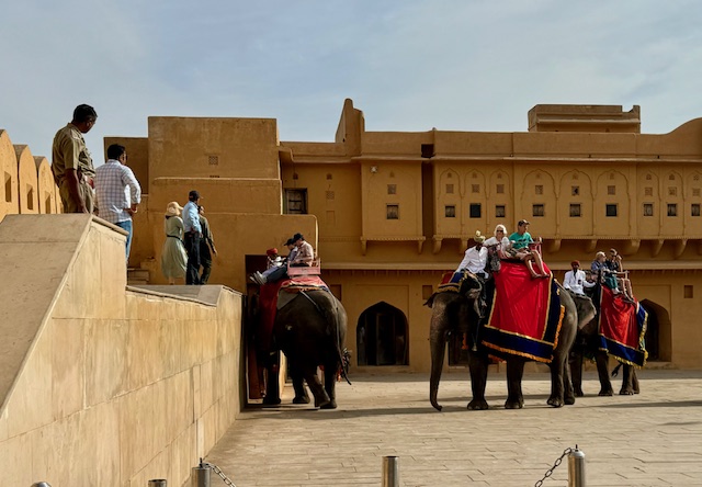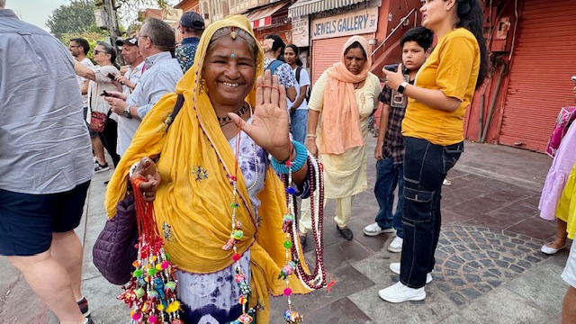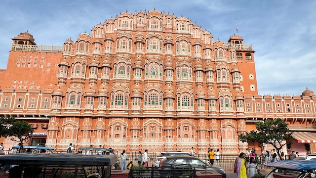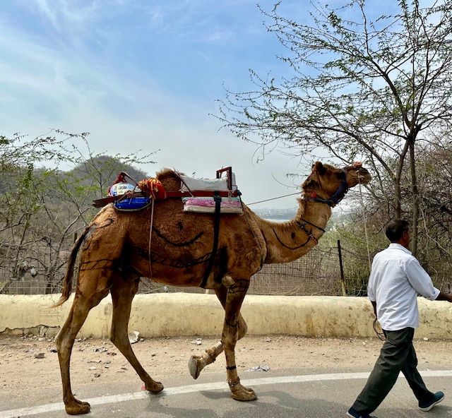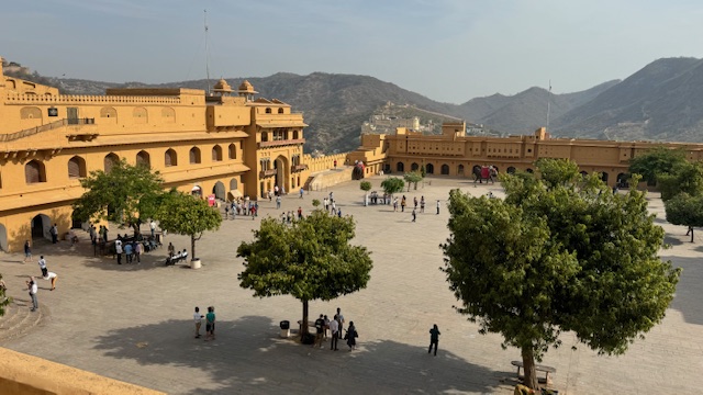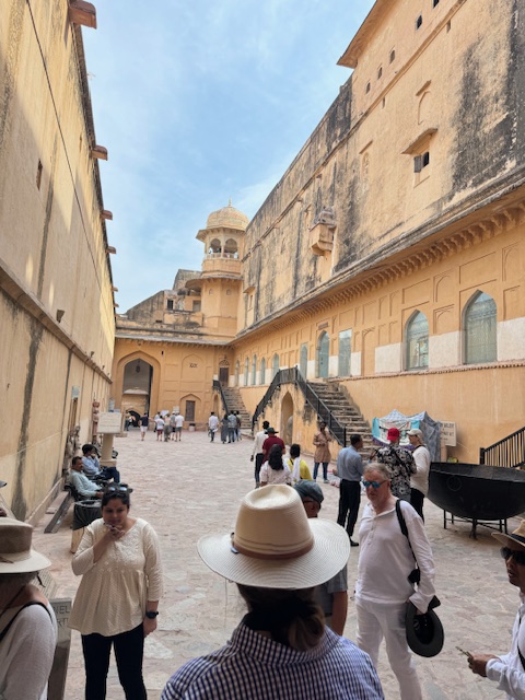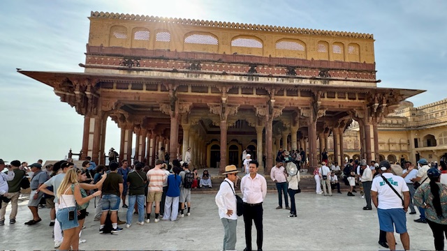 We began the morning with a drive through Jaipur old town, known as the “Pink City” as all of the buildings there are painted a shade of pink. We made one photo stop at the Hawa Mahal palace located on the main business street during the late 1700’s specifically for the ladies of the palace. In those days royal women were not allowed to venture out of the palace, so this palace was built with many windows so the ladies could observe the everyday life of the common folk.