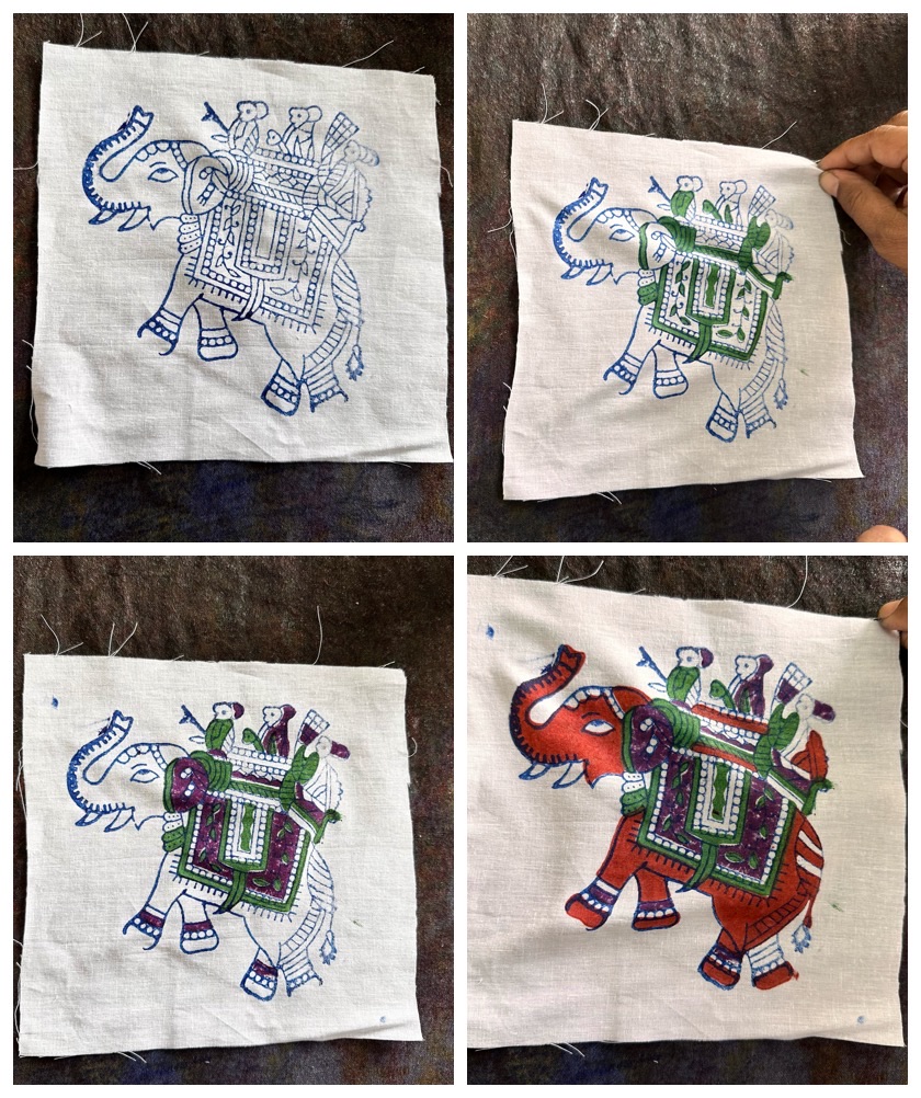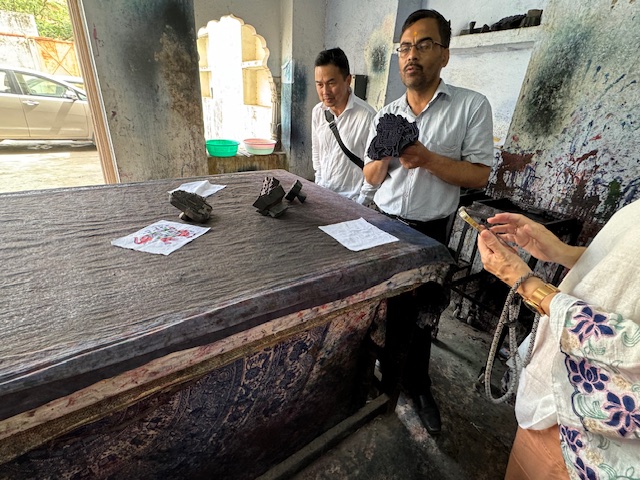 After lunch we made a stop at a local fabric coop for a demonstration of fabric stamping and dying.