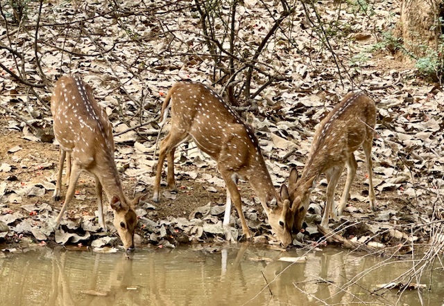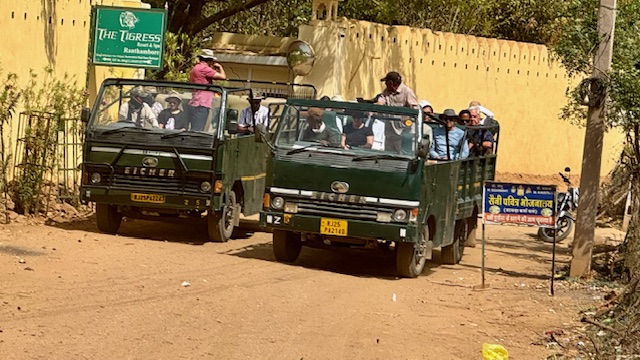 This morning, we made the drive from Jaipur to the Ranthambore Tiger Reserve arriving around noon. We checked into our jungle resort, The Tigress Resort and Spa and had a wonderful traditional Indian lunch before going out for an afternoon Safari. The Rathambore National Park offers one of the best chances in the world to see Royal Bengal Tigers in the wild. Obviously, the park is best known for the Tigers, but is all home to Blue Bulls, Boar, Sloth Bears, Gray Langur Macaques, Spotted Deer and Black Face Monkeys. Other predators in the park include Leopards, Hyenas and Crocodiles. Today we were able to see most of the Deer and Antelope species, the Black Face Monkeys and a Tiger.