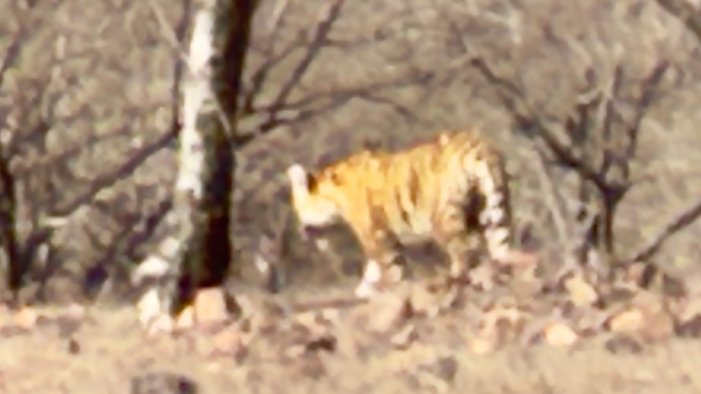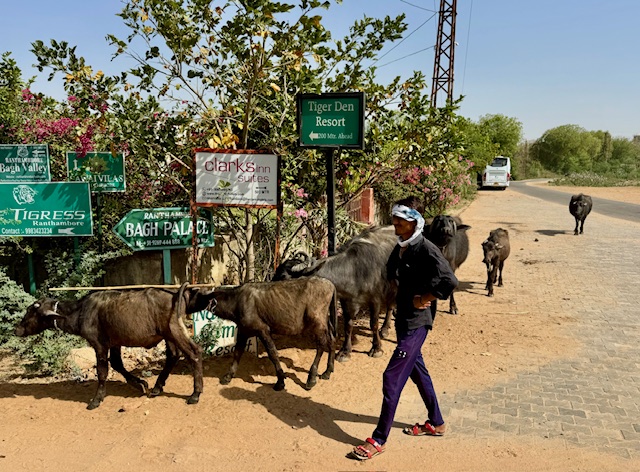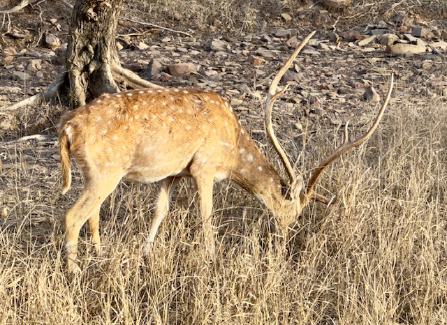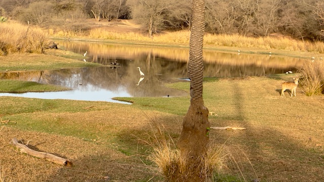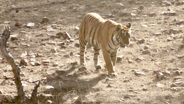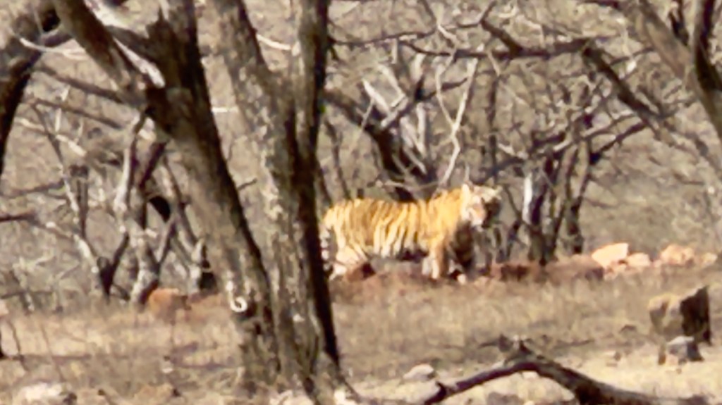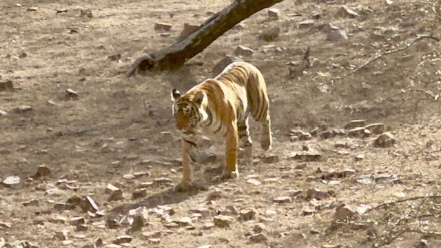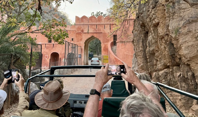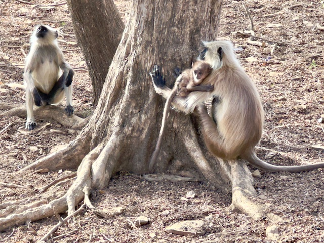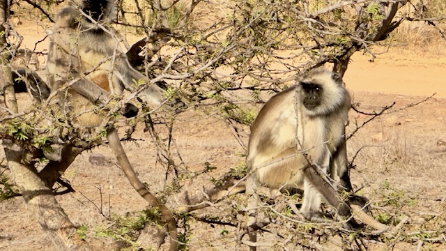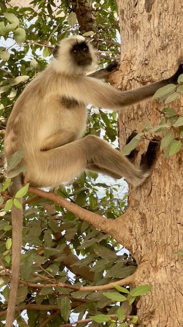 We started today gathering with our group at 6:00 AM for a morning safari in the Tiger Reserve. We headed out shortly after, but this time we went to area three of the park which was only about a 10-minute drive from our hotel. The terrain here was much different than the area of the park we were in yesterday, hillier and more water. The big prize that we were looking for today was a mother tiger with two cubs that are nine months old— almost full grown, but still dependent upon mom to hunt. It was a huge day we saw virtually all game the park has to offer with the exception of Leopards. We managed to see all of the deer and antelope we saw yesterday plus crocodiles, the sloth bear, numerous birds, black faced monkeys and ultimately all three of the tigers we were looking for. The mother walked within 20 yards of the truck, but the cubs were roughly 300 yards away, so the photos of the cubs are a little blurry.