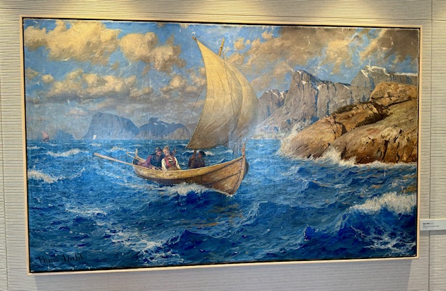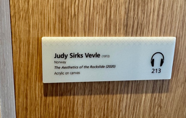 A common thread across every cruise ship and every cruise line that we have sailed is all ships have a beautiful art collection. Viking is no exception; however, Viking’s art is different than the other lines we have cruised with. Their art is there not only to delight, but to pay homage to the line’s heritage featuring established as well as up and coming artists most of whom are Norwegian. The ships art guide says; “The pieces you will see throughout the ship encompass a variety of media and approaches – from digital to print, from oil paintings to photography and sculpture – and have been handpicked for the depth with which they reflect our origins and the beauty with which they capture our magnificent nature. …We like to think these pieces celebrate the traveler as collector of ideas and experiences, a tradition that dates back to long before the Vikings.”