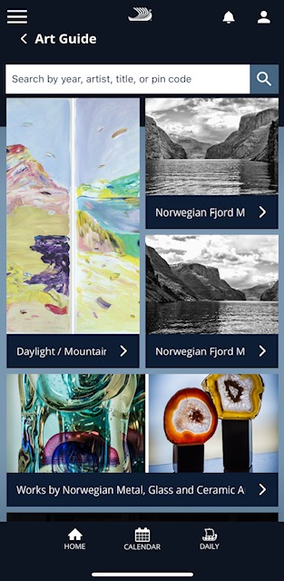 Each of the pieces of art has a small plaque next to it with the artist name, name of the piece and a pin number. The pin number can be entered into an electronic art guide that is included in the Viking App for a more detailed audio description of the item. Using this App, you can take a self-guided tour of the ship’s art collection.