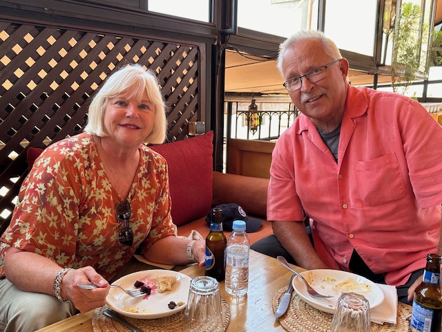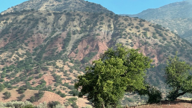 For us and three other couples Agadir is our starting point for what would have been a two- night overland tour, now reduced to one night focusing on Marrakesh and Casablanca. We were met at the pier by our guide Omar who escorted us to our tour van for the three-hour dive to Marrakesh. We were very surprised by the land scape and scenery during our drive from Agadir. After leaving the city we drove into the Atlas Mountains where within an hour we had reached 4,000 feet of elevation — not how I envisioned Morocco. Here are some scenes from our drive.