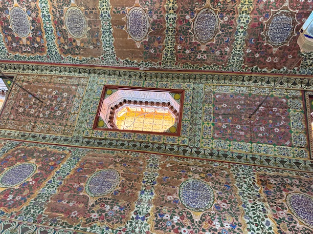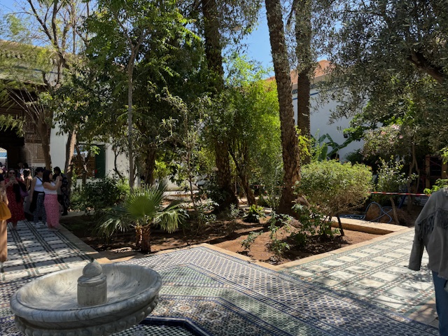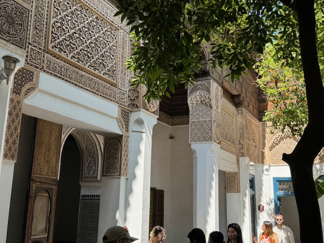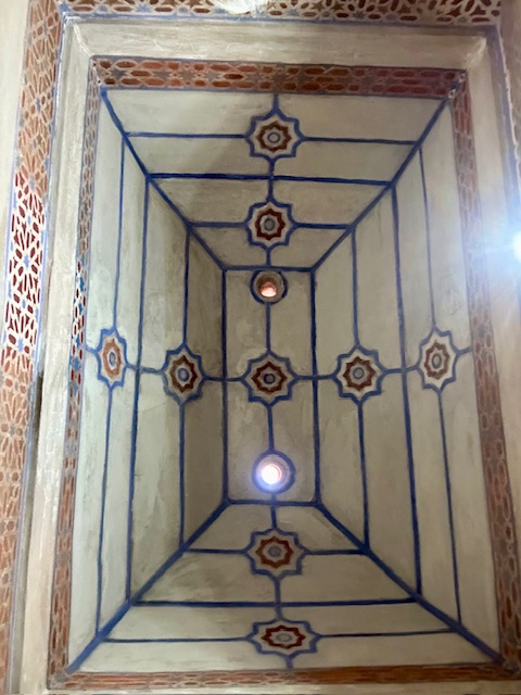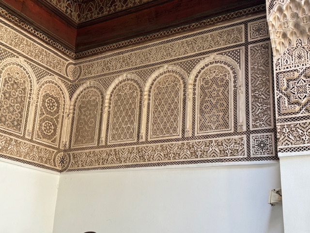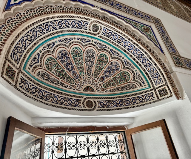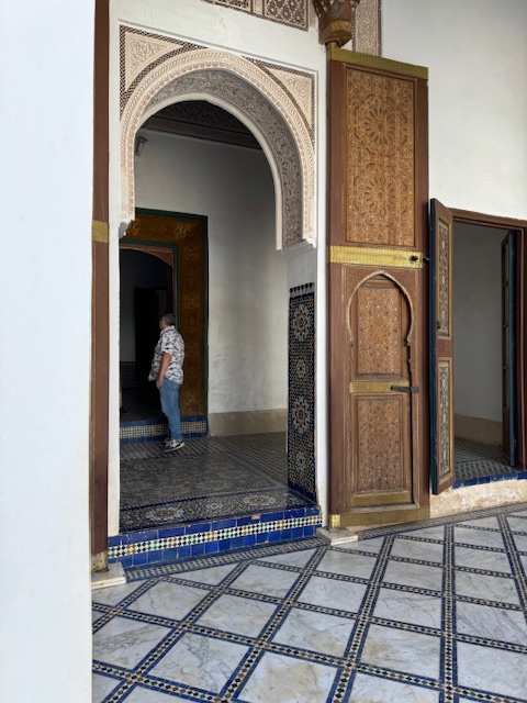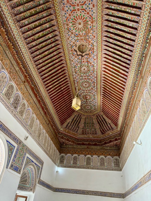 After lunch we took a tour of the Bahia Palace, a magnificent palace from the 19th century that features beautiful tilework and typical Moroccan Architecture. The palace was built to house a local sultan, his four wives and harem of official concubines. The palace is comprised of 150 rooms including reception areas, sleeping quarters and courtyards. The complex is sprawled across eight hectares of land. It is a masterpiece of architecture and art, with fine examples of carved stucco, painted zouak or wood ceilings and zellij mosaics.