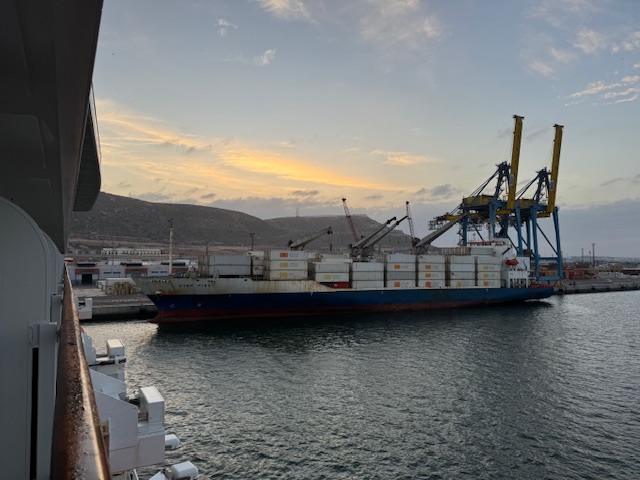 We were scheduled for a late afternoon arrival yesterday in our first of three ports in Morocco, Agadir, but due to winds gusting at nearly 50 knots, we were unable to arrive as scheduled. We circled just outside the harbor entrance waiting for the wind to subside and finally were able to enter the port a little after midnight.