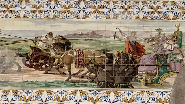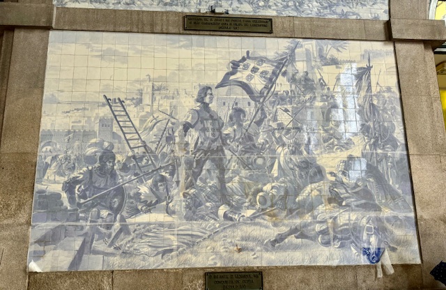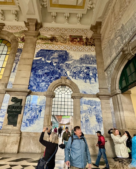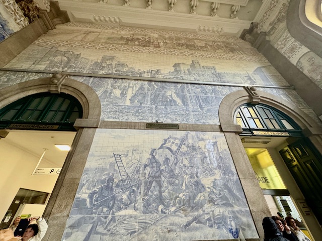 We stopped at the Sao Bento Railway station famous for the azulejo tile mosaics inside the building that depict the history of Porto.