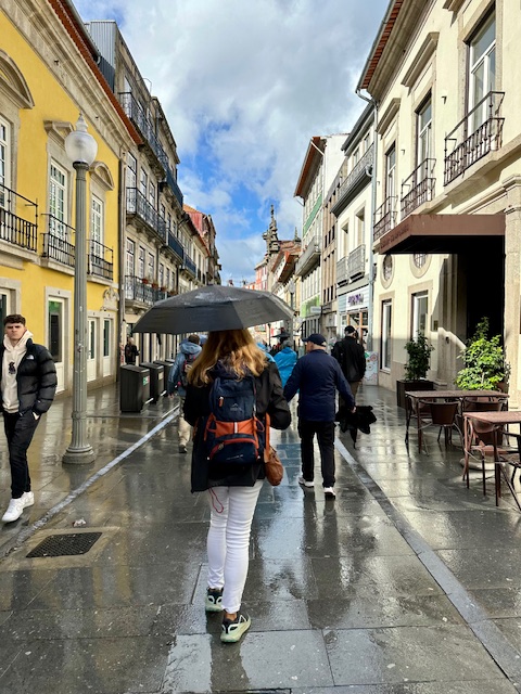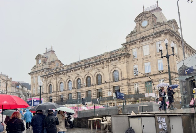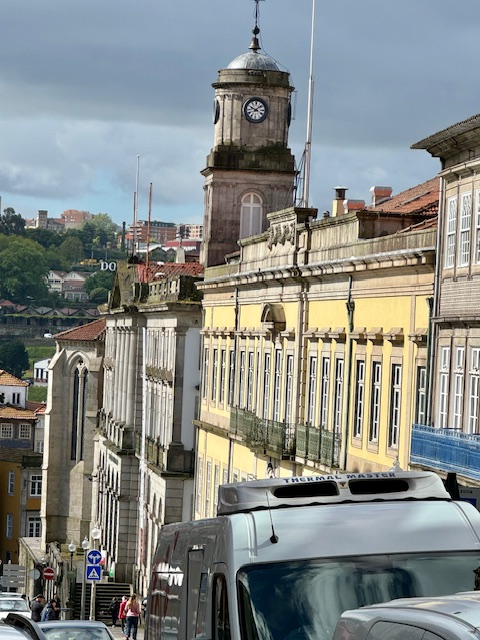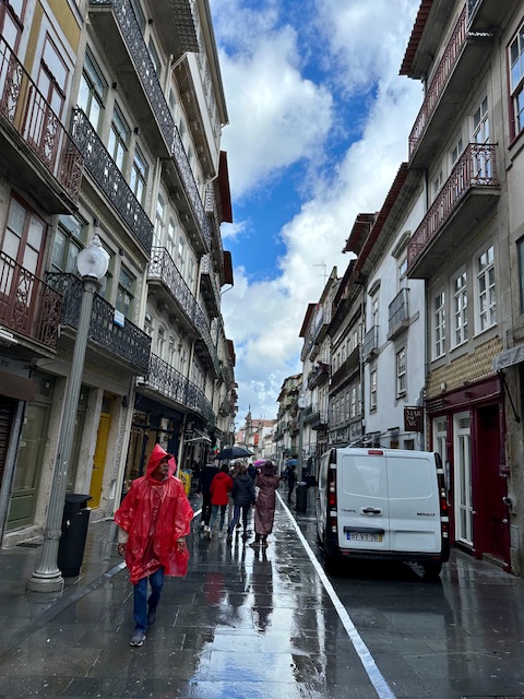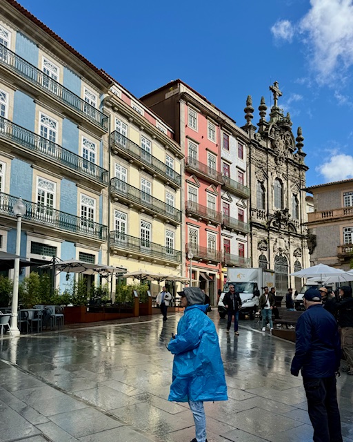 There were a few clouds as we drove into the city, but as soon as we got off the bus to begin the walking portion of the tour, it began to rain, so picture taking was a little challenging today. The tour began near the Clerigos tower a prominent monument, dating back to the 18th century, that is the symbol of the city. We walked along the Praca Da Liberdade enjoying the beautiful architecture.