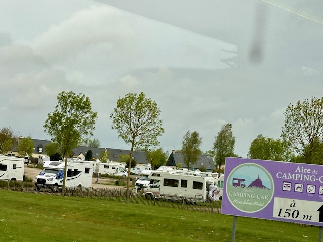 Le Mont-Saint-Michel is perched on a small island off the coast of Normandy, just a few miles south of the Normandy landing beaches. The island is connected to the mainland by a long causeway that crosses the large tidal plain. Because of this Le Mont-Saint-Michel’s large parking area is located about two miles from the island. From the parking lot we transferred to special shuttle buses that took us the rest of the way.