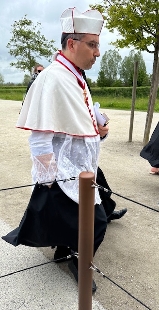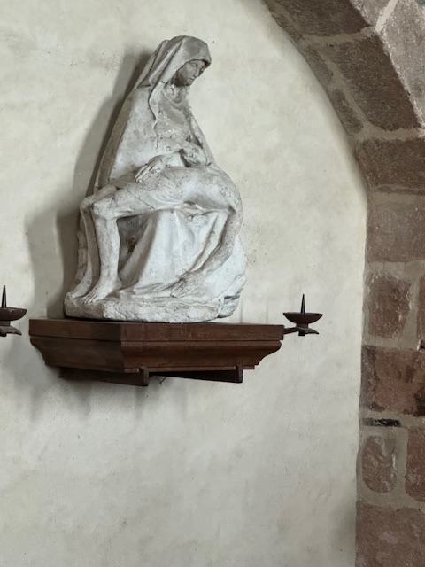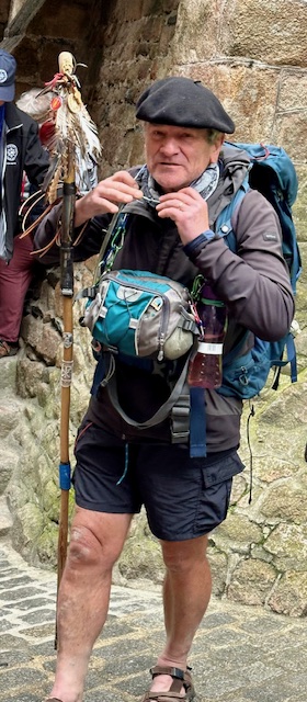 We visited a second smaller parish church called St. Peters located in the village. As the name implies, it serves as the village parish. The abbey complex is a frequent stop for pilgrims that are walking the famous Camino de Santiago, or way of St. James enroute to Santiago de Compostela in Northern Spain. While in St. Peters, we witnessed the arrival of one of these pilgrims.