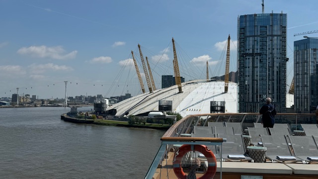 Today we sailed up the Thames River and docked in Greenwich near the Old Naval College. Greenwich is not only famous for the Naval College, but is also home of the Royal Observatory, home of Greenwich Mean Time, and sets on the prime meridian. By the time we were finally moored and able to leave the ship, it was too late to visit the museum, but we were able to visit a local pub near the observatory for a pint of Ale. Here are some pictures from today.